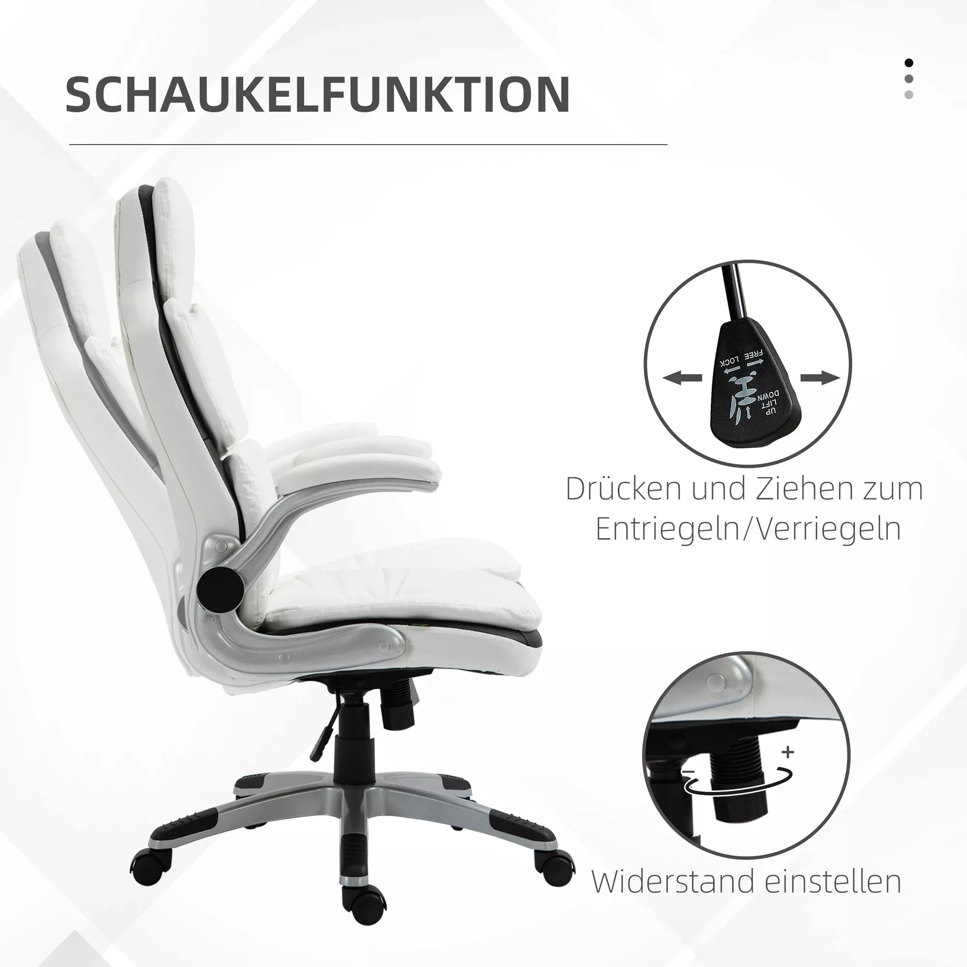 Ergonomiška biuro kėdė su atlenkiamais porankiais, aukščio reguliuojamas rašomojo stalo krėslas su svyravimo funkcija, storai paminkštinta kėdė su reguliuojamu paminkštintu porankiu 69 x 67 x 113-121 cm