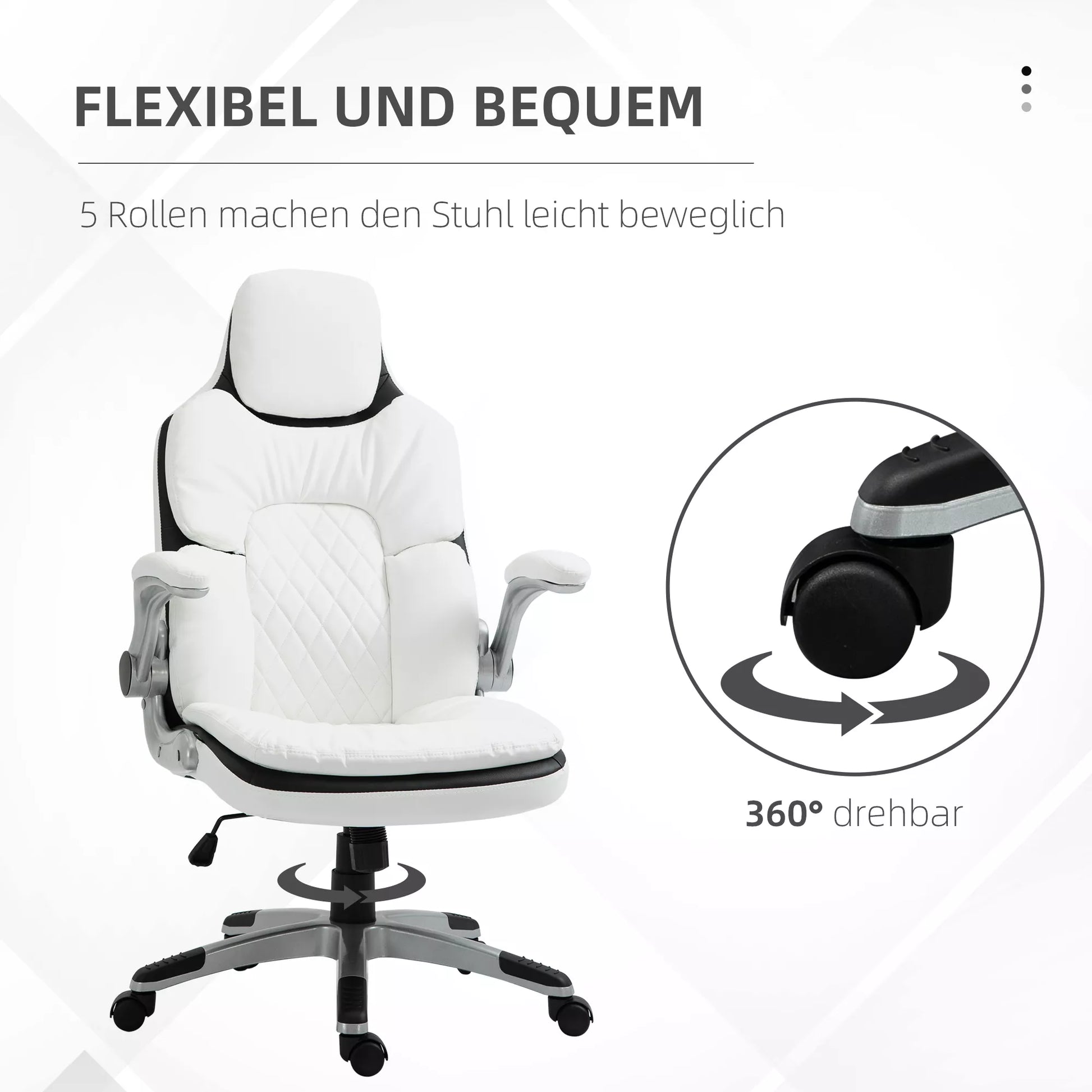 - ✔ 360° pasukama bazė su penkiais universaliais ratukais leidžia lengvai judėti