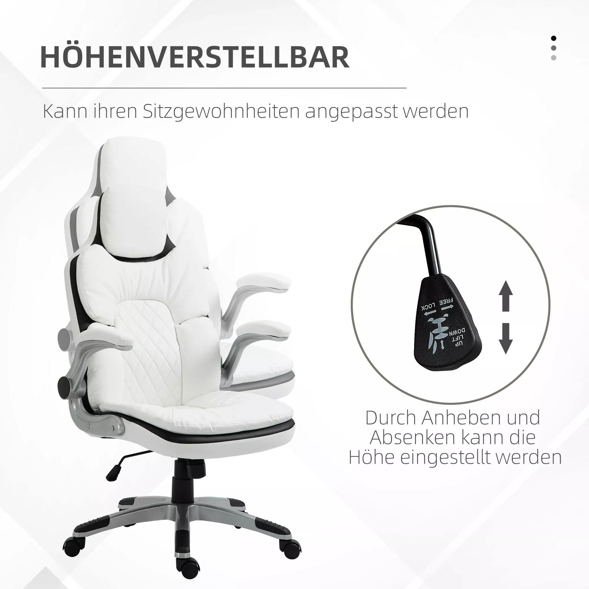 - ✔ Pneumatinis svirtis leidžia lengvai reguliuoti aukštį