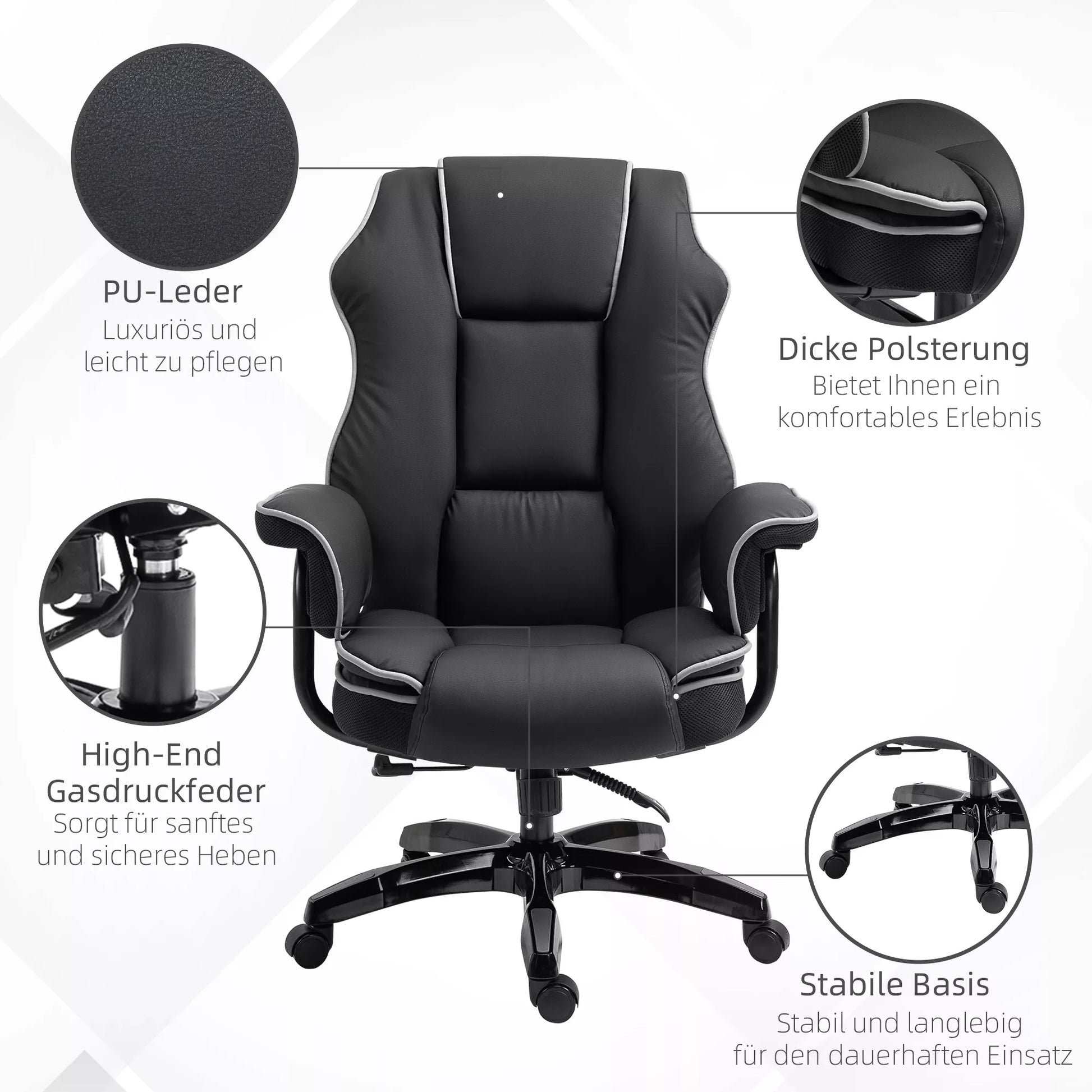 Vinsetto Ergonomiška Biuro Kėdė, Sukama Kėdė su Poilsio Funkcija, Reguliuojamo Aukščio Kompiuterio Kėdė Namų Biurui, Dirbtinė Oda, Juoda