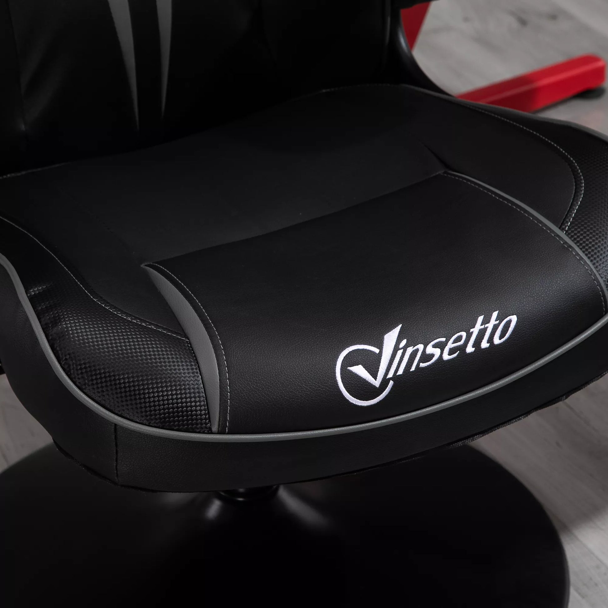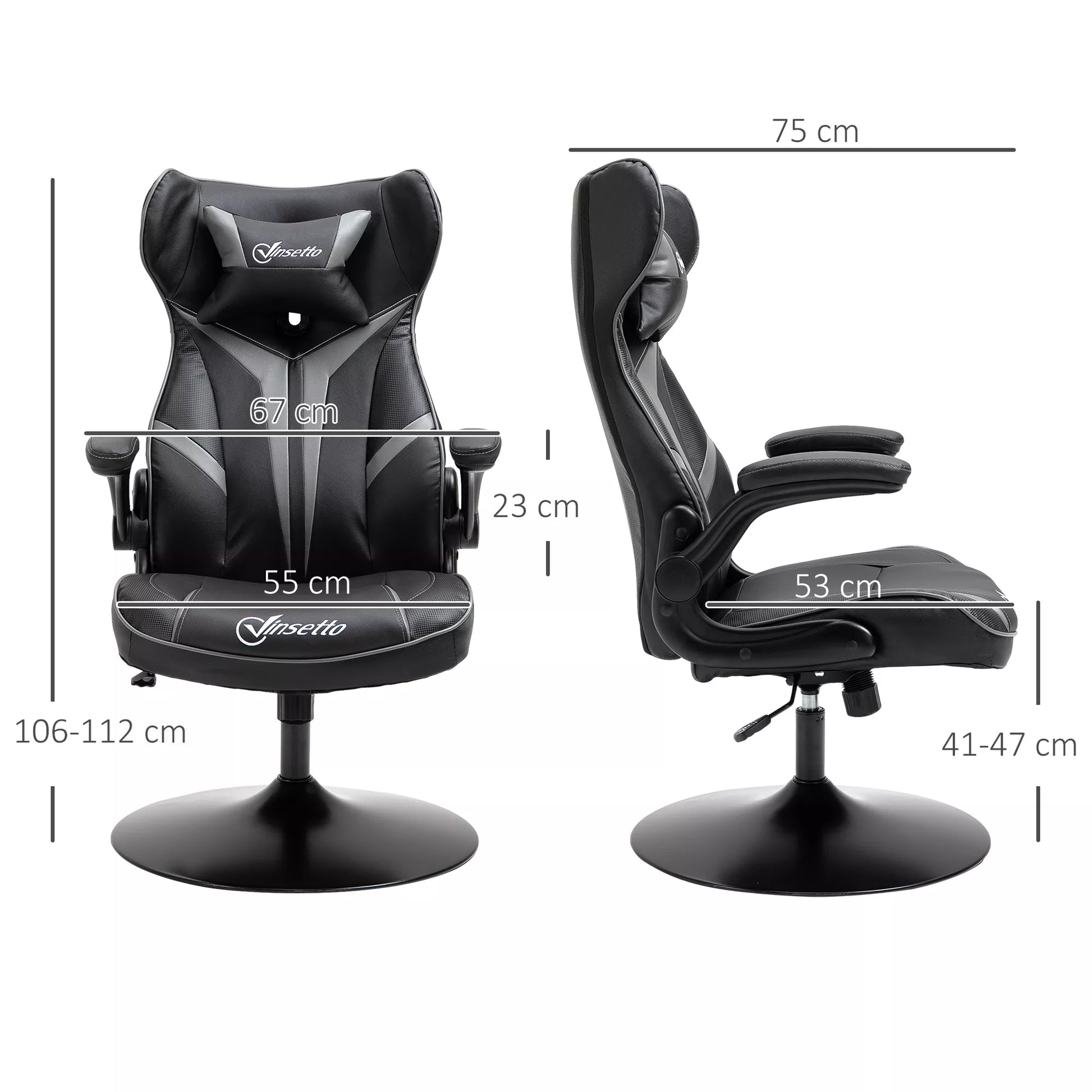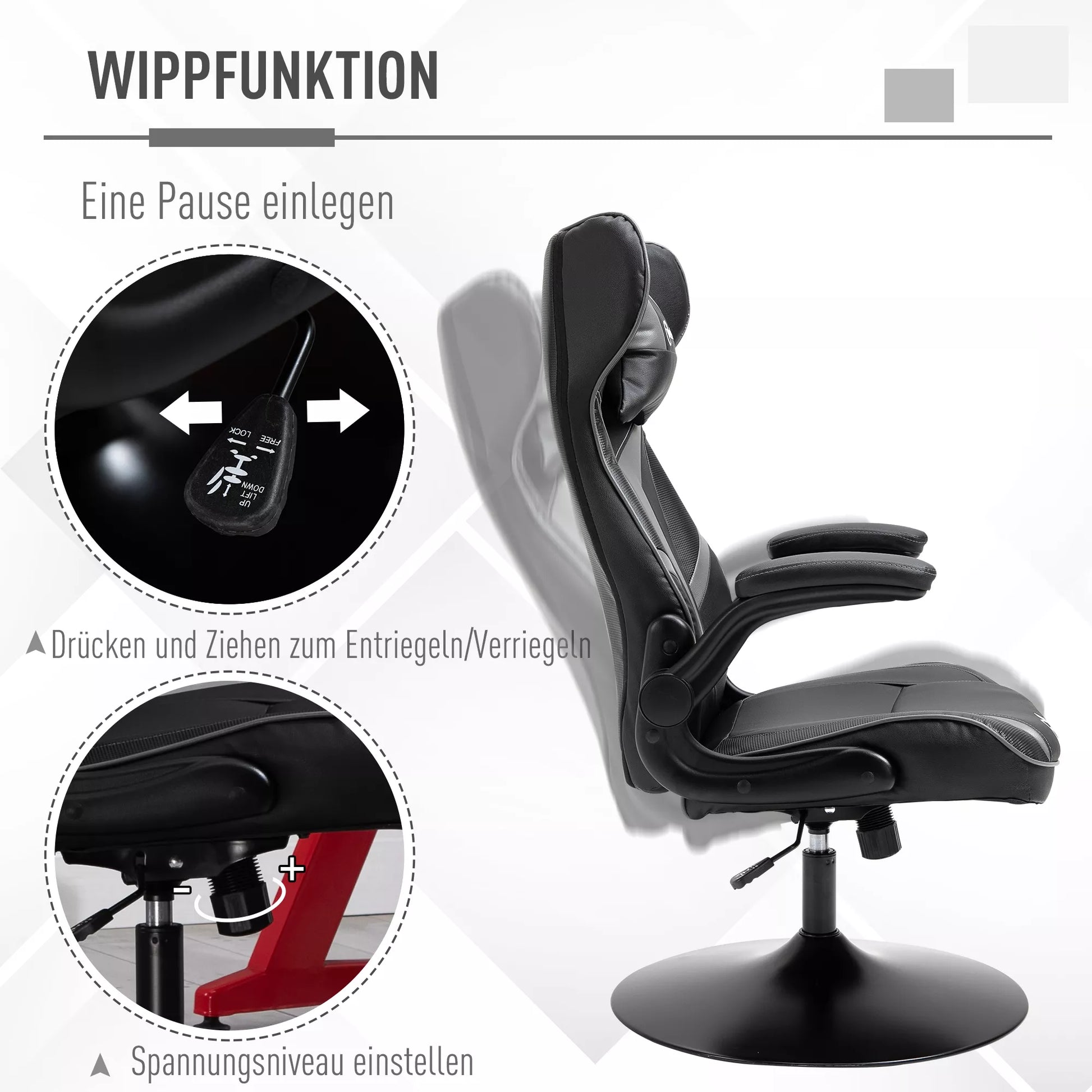Ergonomiška žaidimų kėdė su svyravimo funkcija, pasukama, aukščio reguliuojama, plieninė, juoda+pilka, 67 x 70 x 106-112 cm