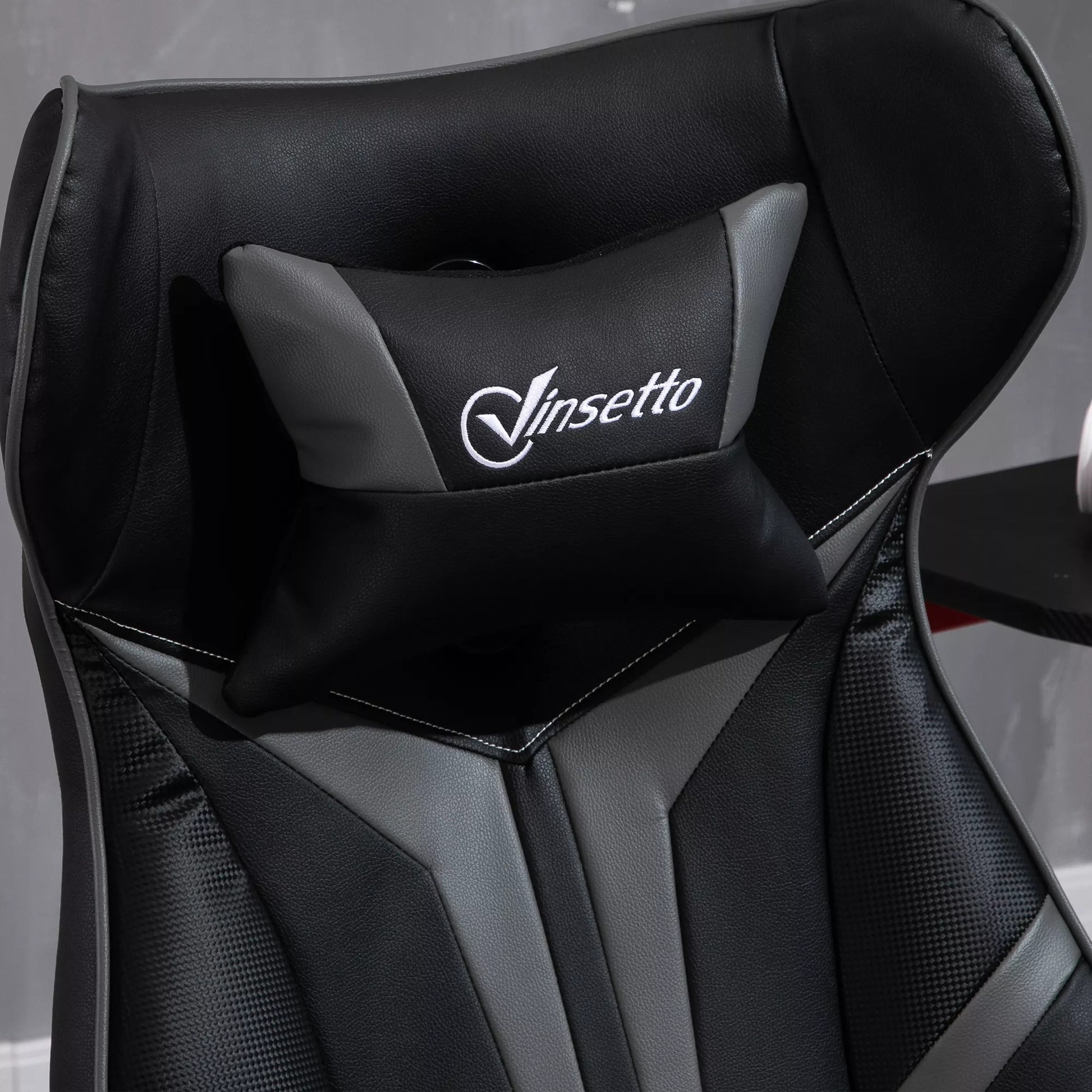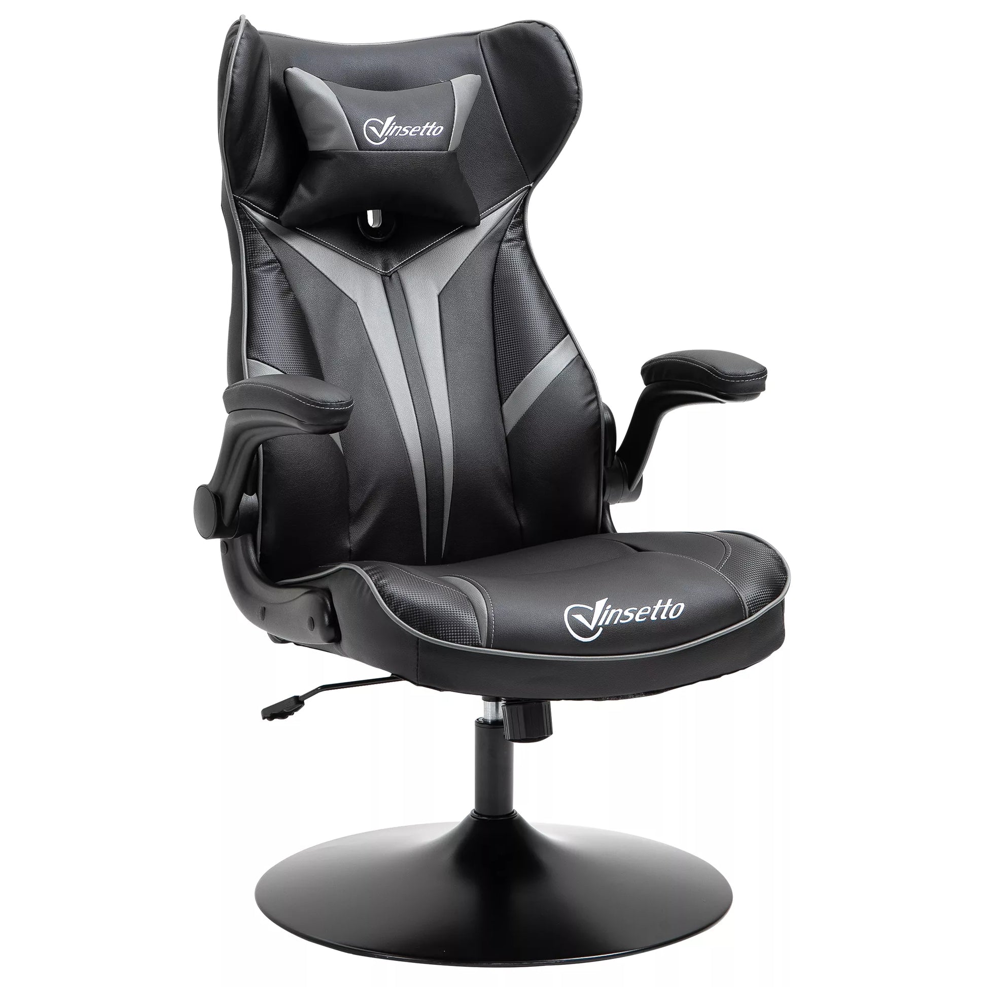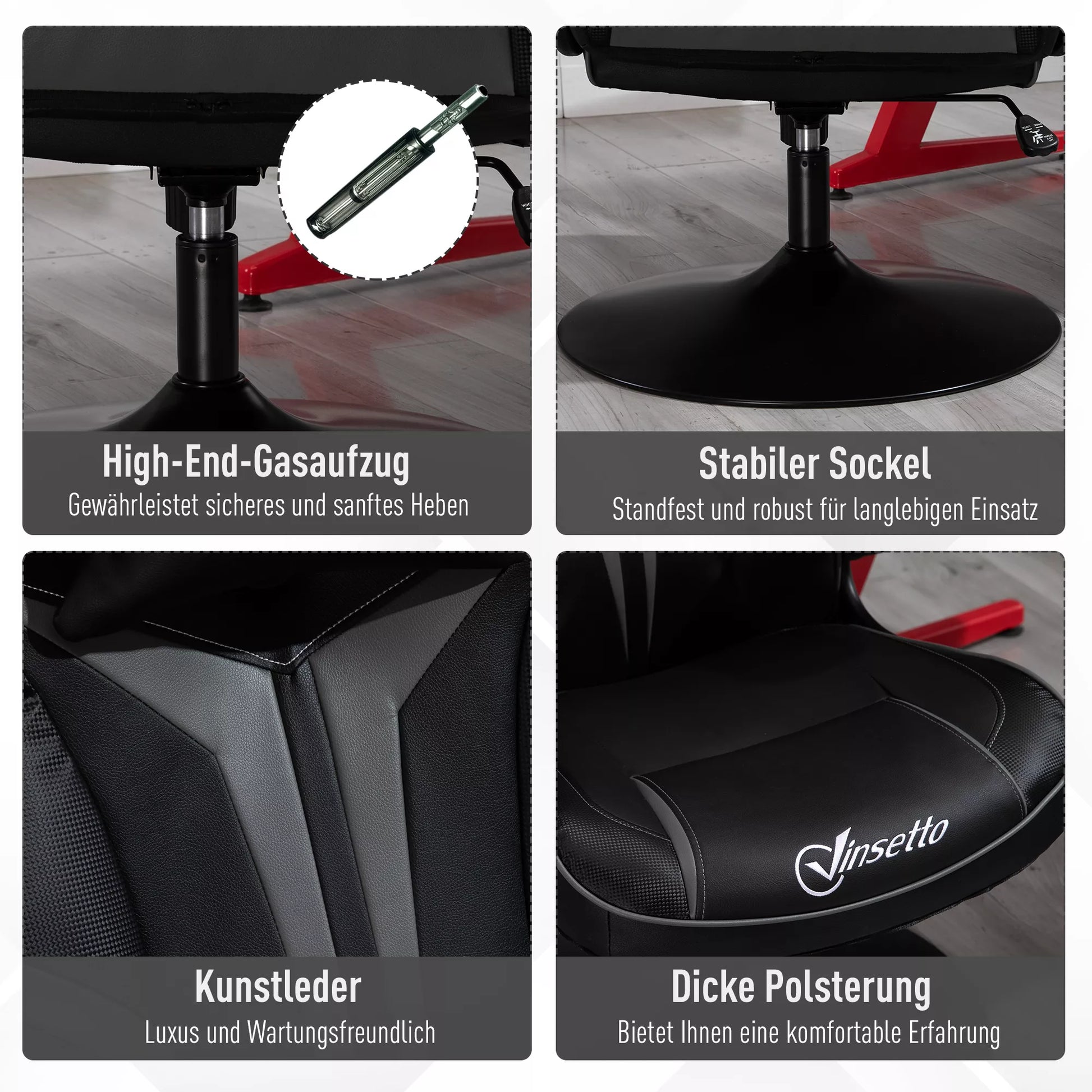 Ergonomiška žaidimų kėdė su svyravimo funkcija, pasukama, aukščio reguliuojama, plieninė, juoda+pilka, 67 x 70 x 106-112 cm