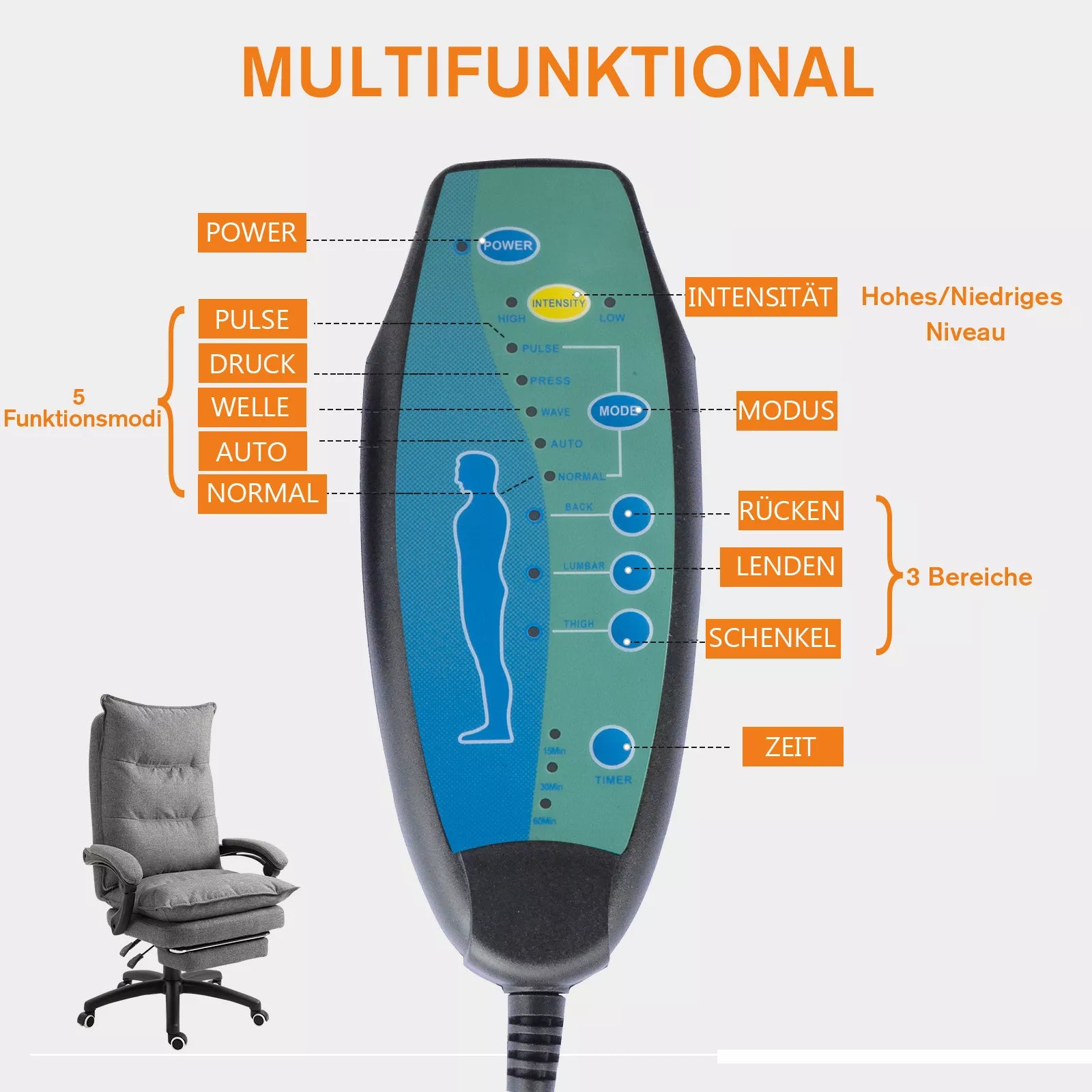 - ✔ Šeši vibracijos masažo taškai nugaros, juosmens, stuburo ir šlaunų srityse