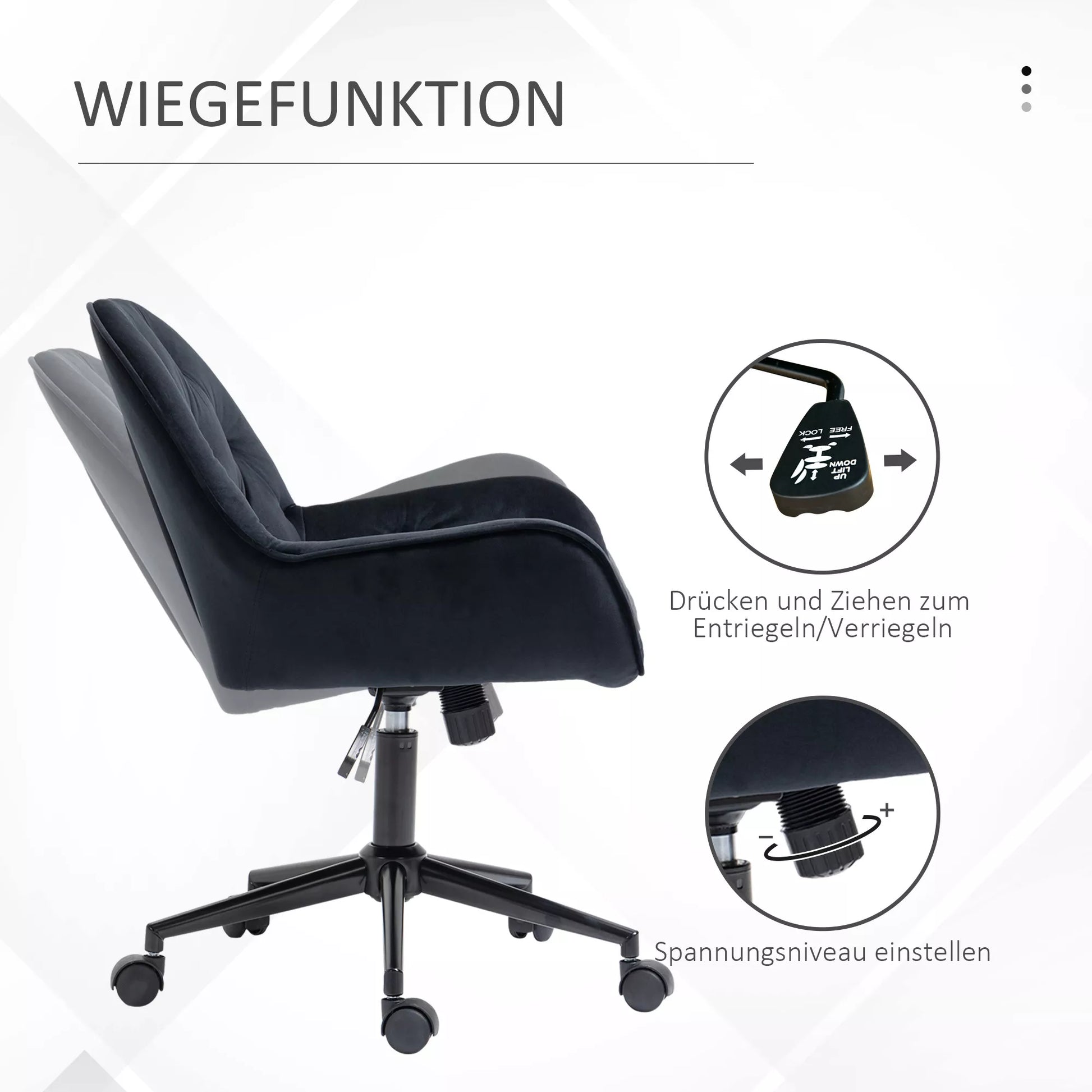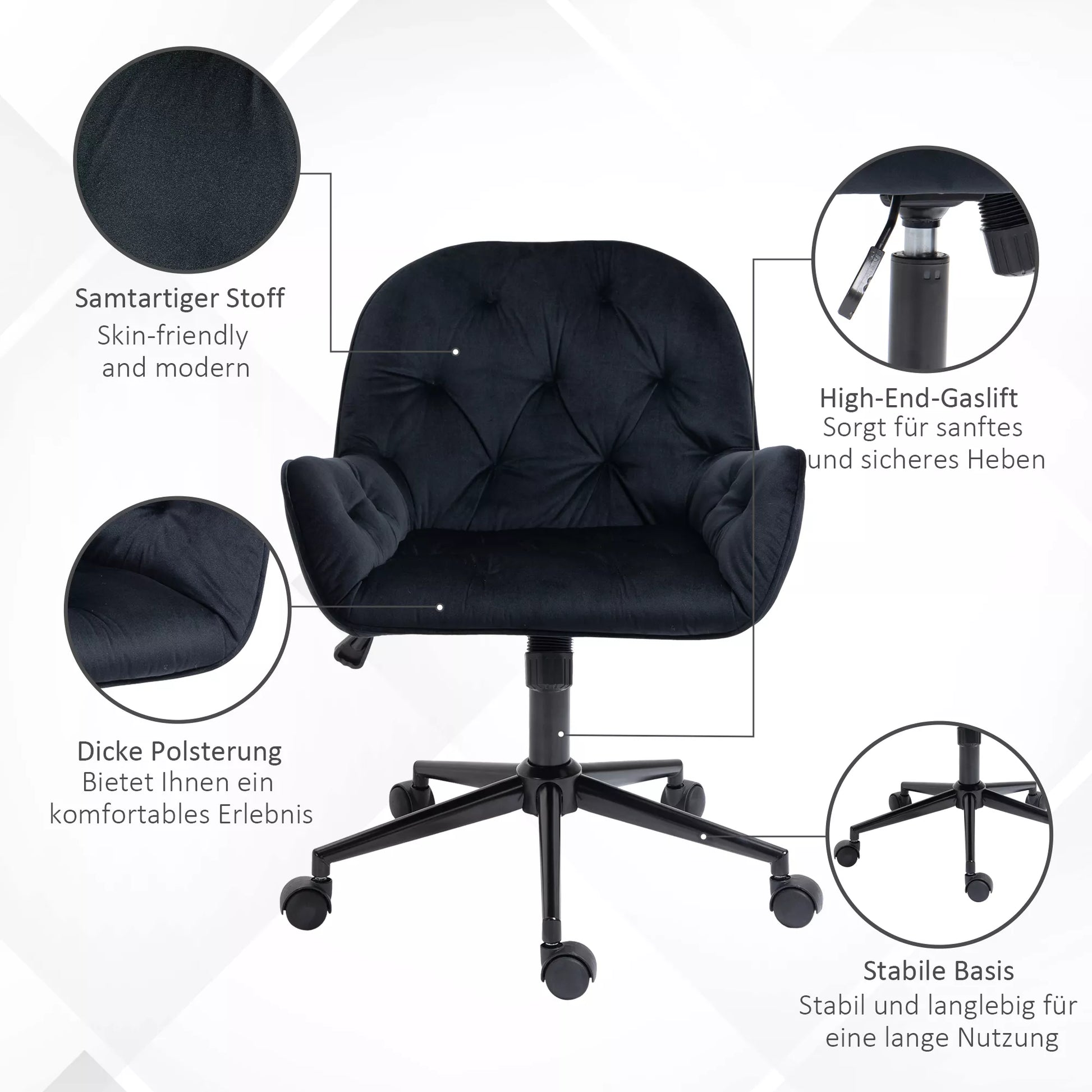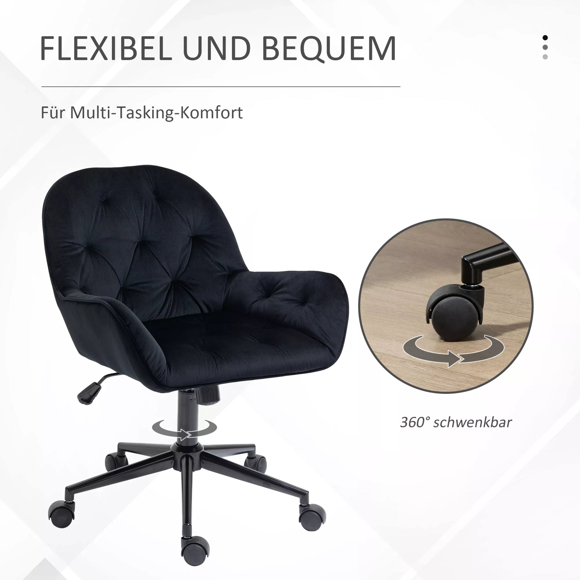 Namų biuro kėdė, rašomojo stalo kėdė su aksomo išvaizda, reguliuojamo aukščio, pasukama kėdė, kosmetologės kėdė, biuro kėdė, atlaikanti iki 120 kg, darbo kambariui, miegamajam, juoda
