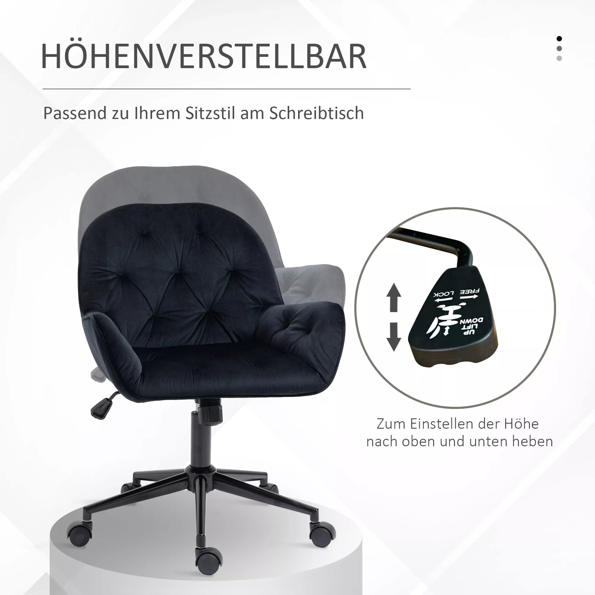 - ✔ Sėdėjimo aukštis gali būti reguliuojamas pagal jūsų stalą ar sėdėjimo stilių