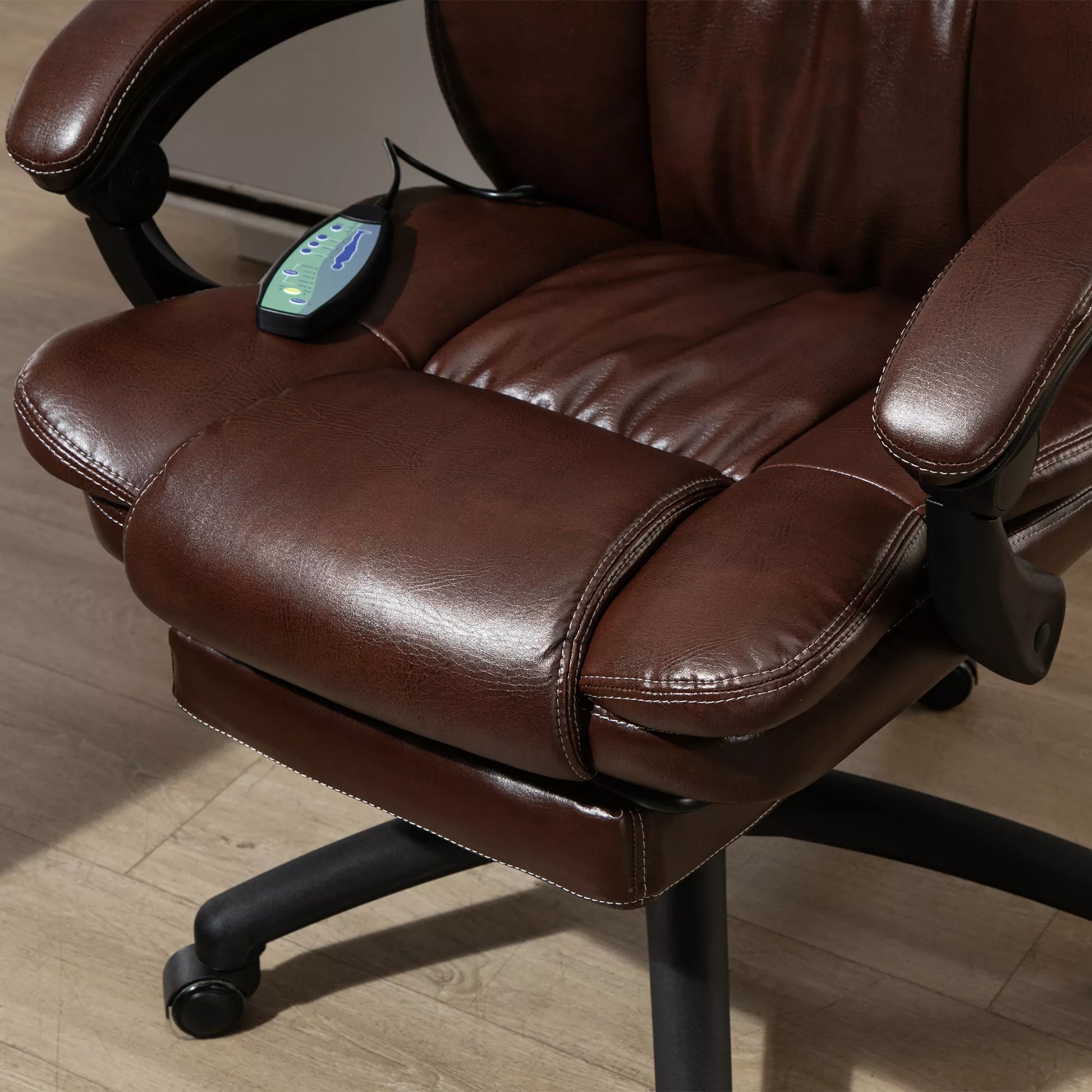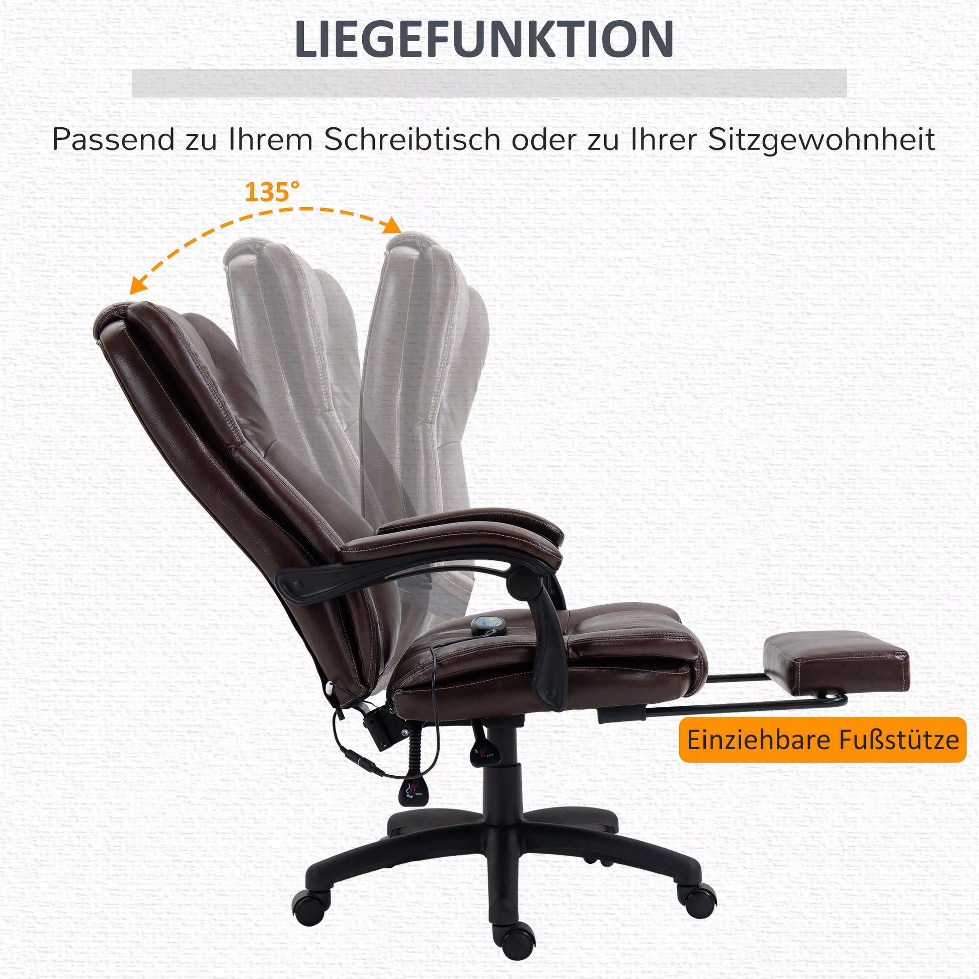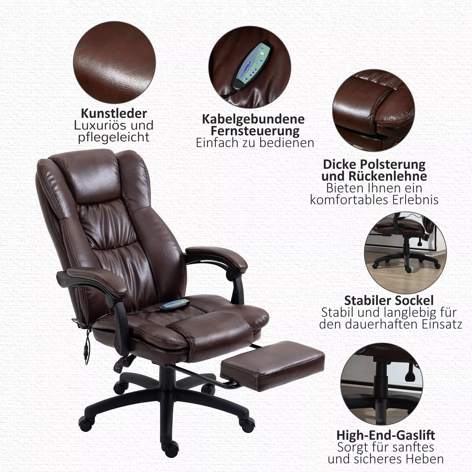 Reguliuojama pasukama kėdė su kojų atrama, galvos atrama, masažo funkcija, dirbtine oda, 68,5x68,5x113-121cm, ruda