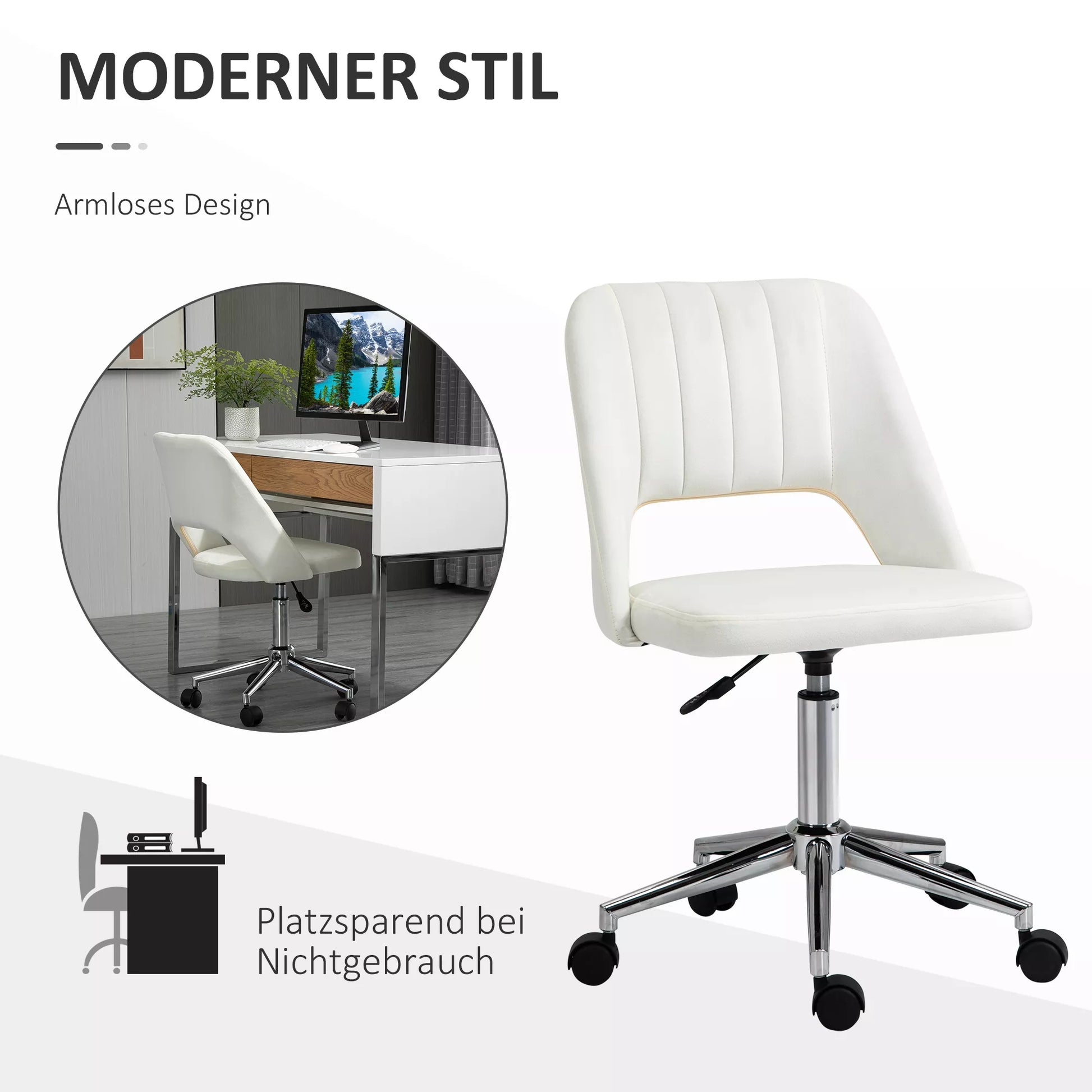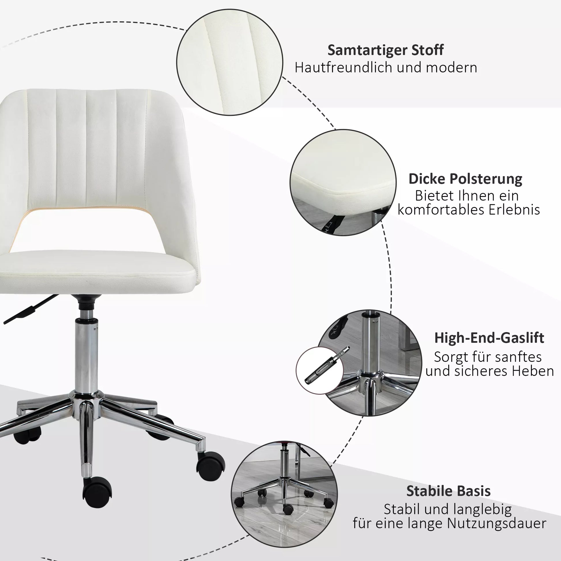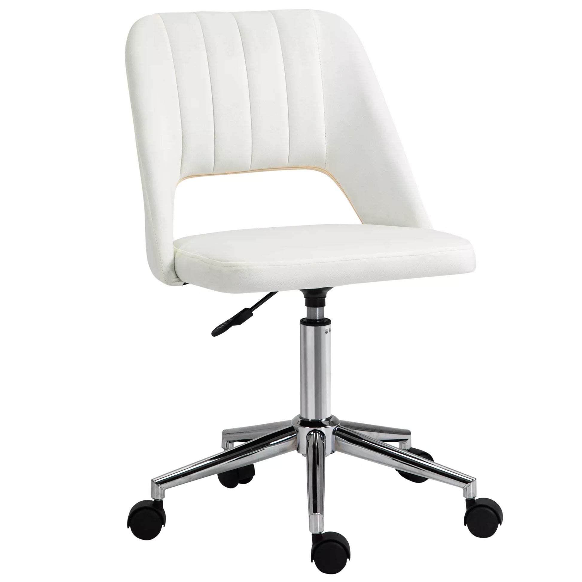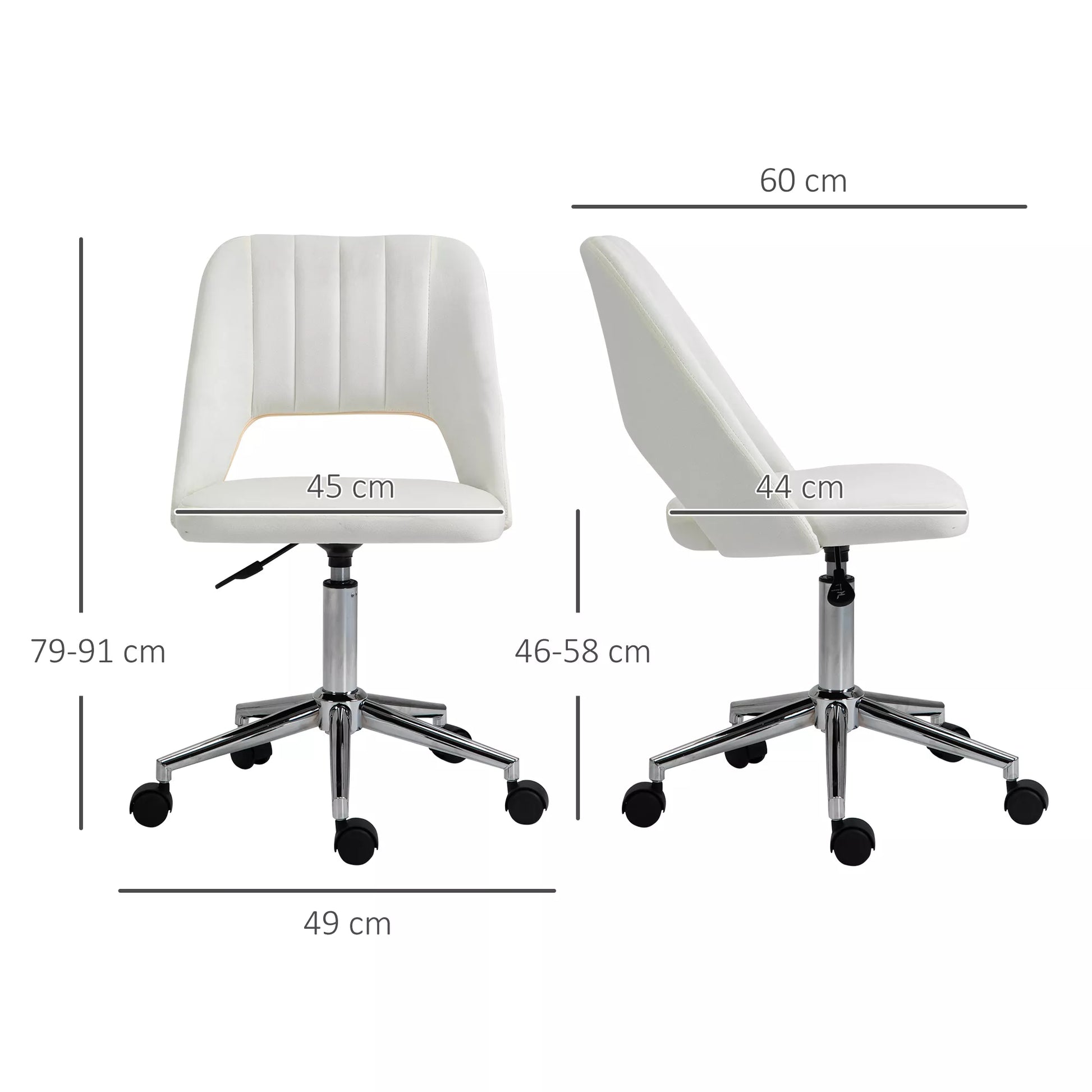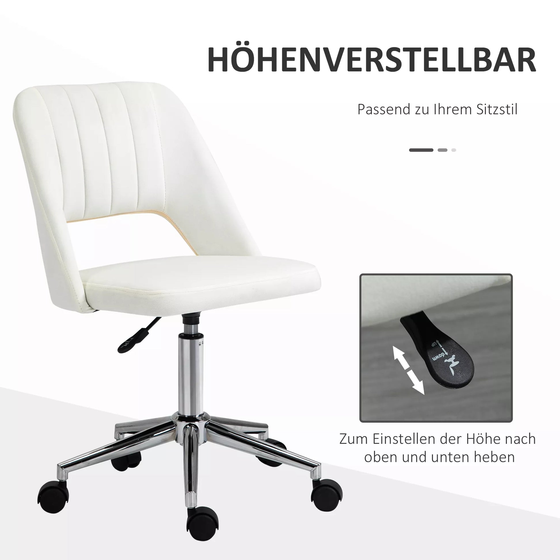 Reguliuojamo aukščio biuro kėdė su ratukais, 360° besisukanti, su jūros kriauklių formos atlošu, putplastis, 49 x 60 x 79–91 cm, kreminės baltos spalvos