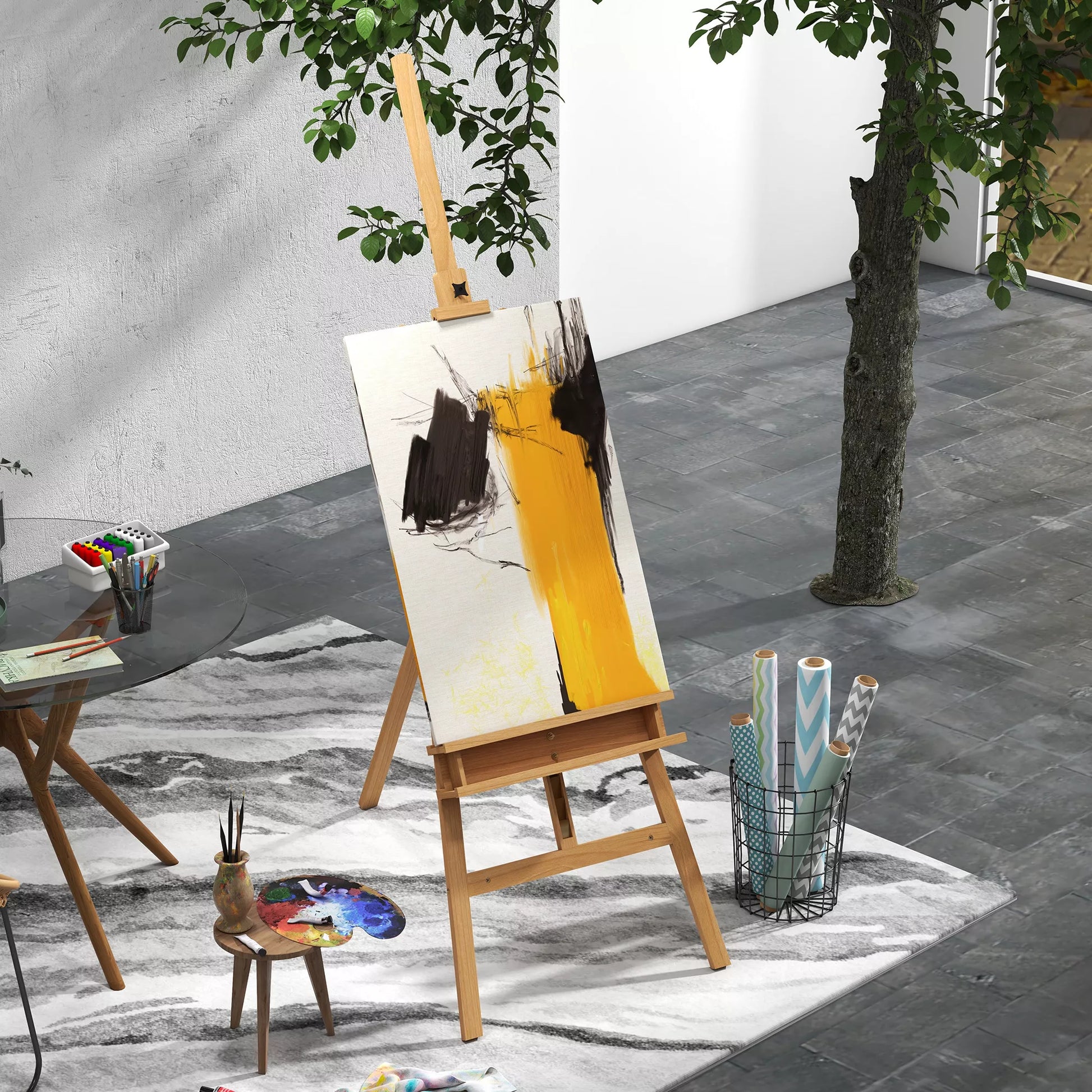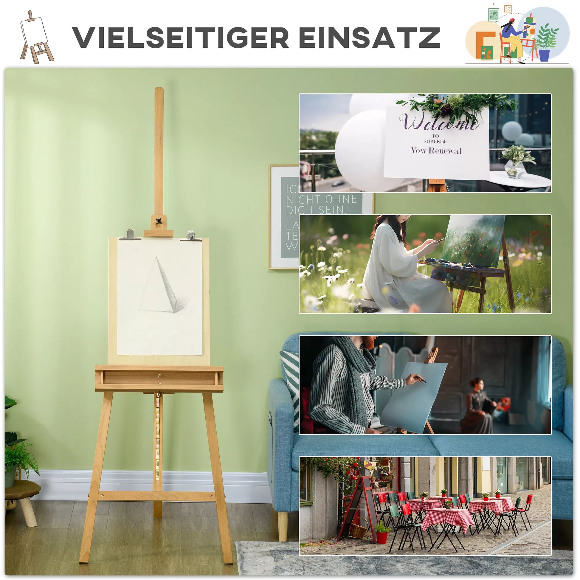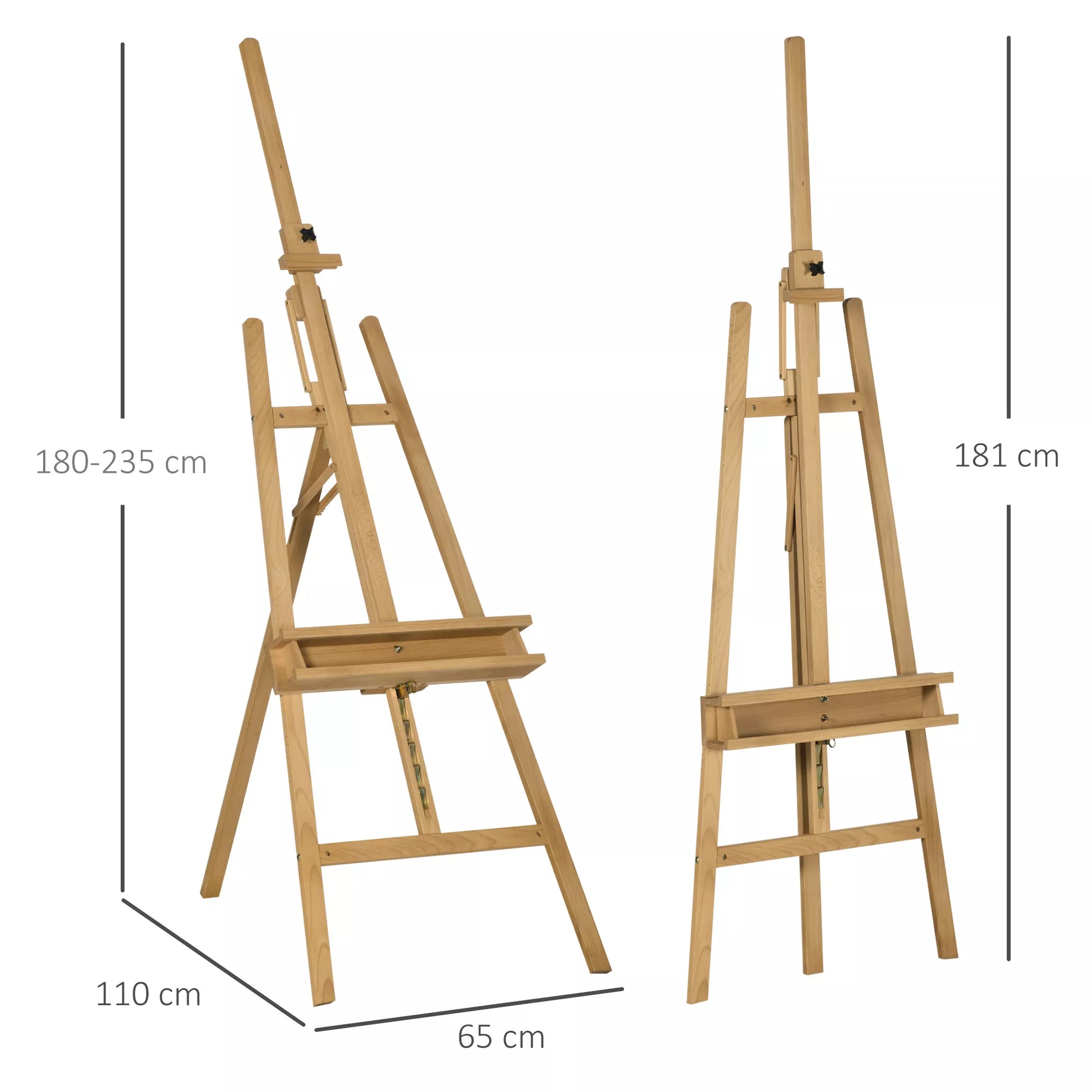 Medinis molbertas, aukščio reguliavimo, sulankstomas, pieštukų padėklas, buko mediena, 65 x 110 x 180–235 cm