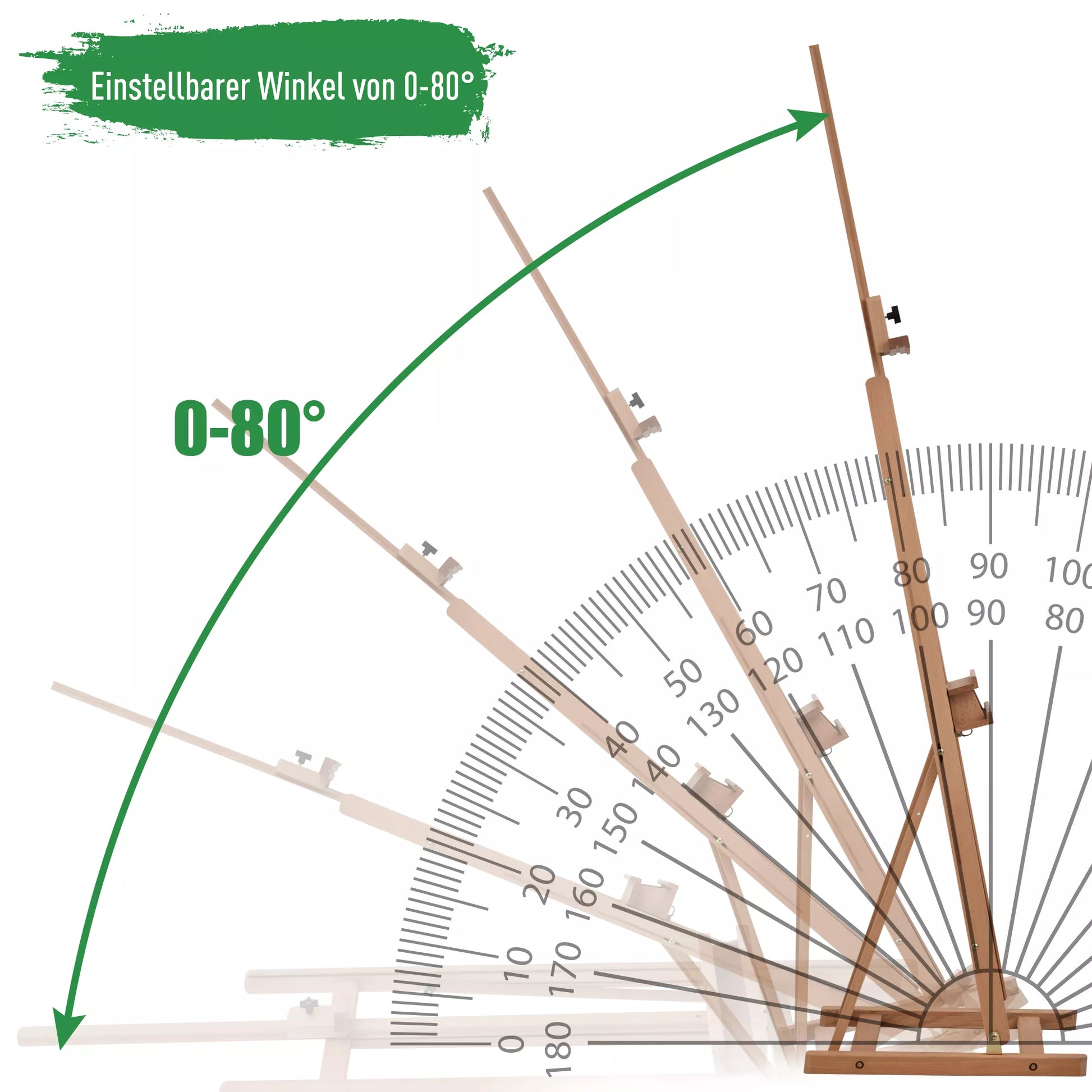 Praktiška ir dekoratyvi vienu metu: kokybišką buko medienos molbertą galite naudoti tapymui arba meno kūriniams eksponuoti. Kampas reguliuojamas nuo 0 iki 80 laipsnių, todėl galėsite pasirinkti patogiausią darbo padėtį. Aukštis taip pat reguliuojamas, todėl galėsite dirbti tiek sėdėdami, tiek stovėdami.