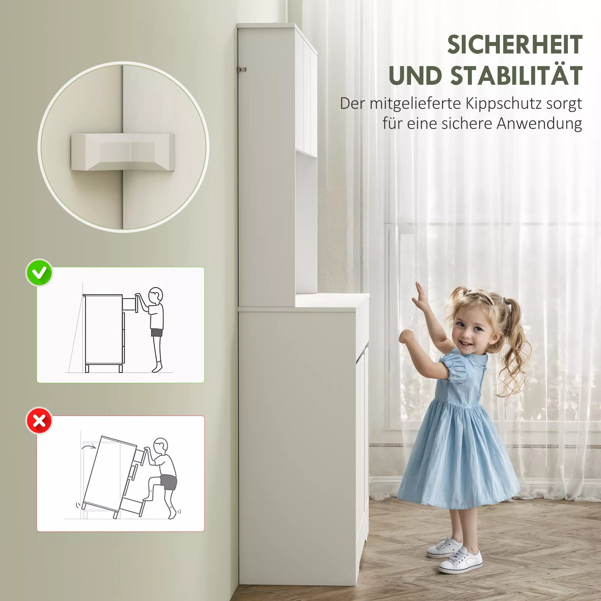 - ✔ Reguliuojamos trijų lygių daugiafunkcinės spintelės lentynos leidžia pritaikyti saugojimo vietą skirtingų dydžių daiktams