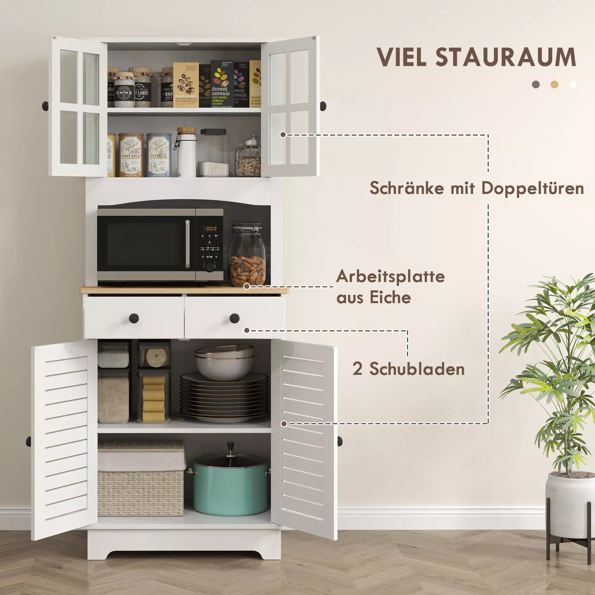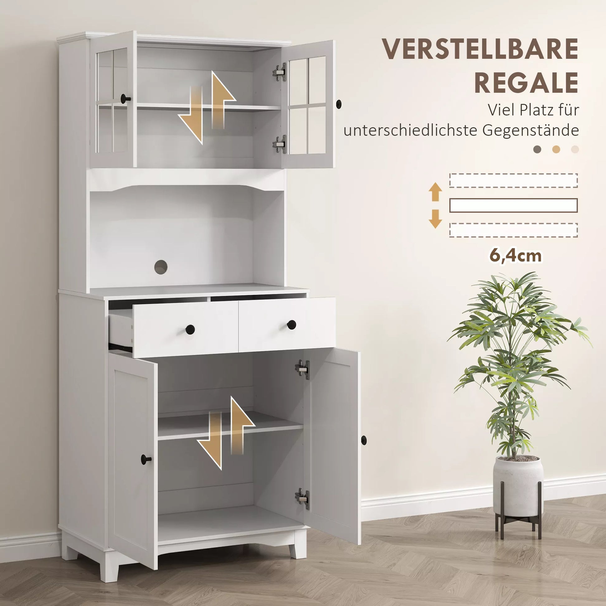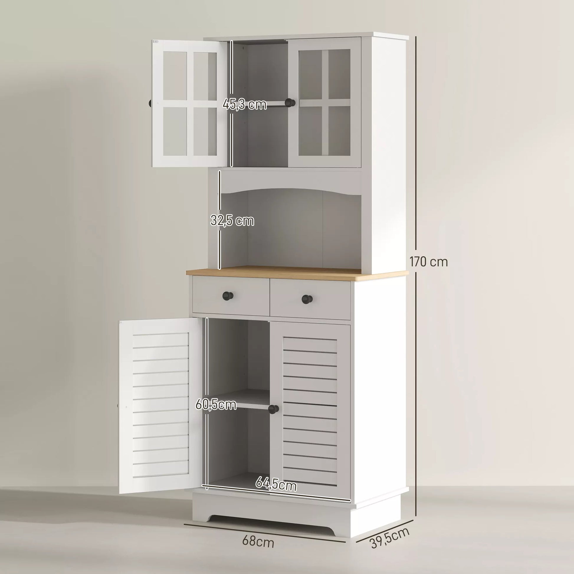 Virtuvės spintelė su stiklinėmis durelėmis, 2 stalčiai, indų spintelė, valgomojo spintelė, medinė, 68 x 39,5 x 170 cm, balta