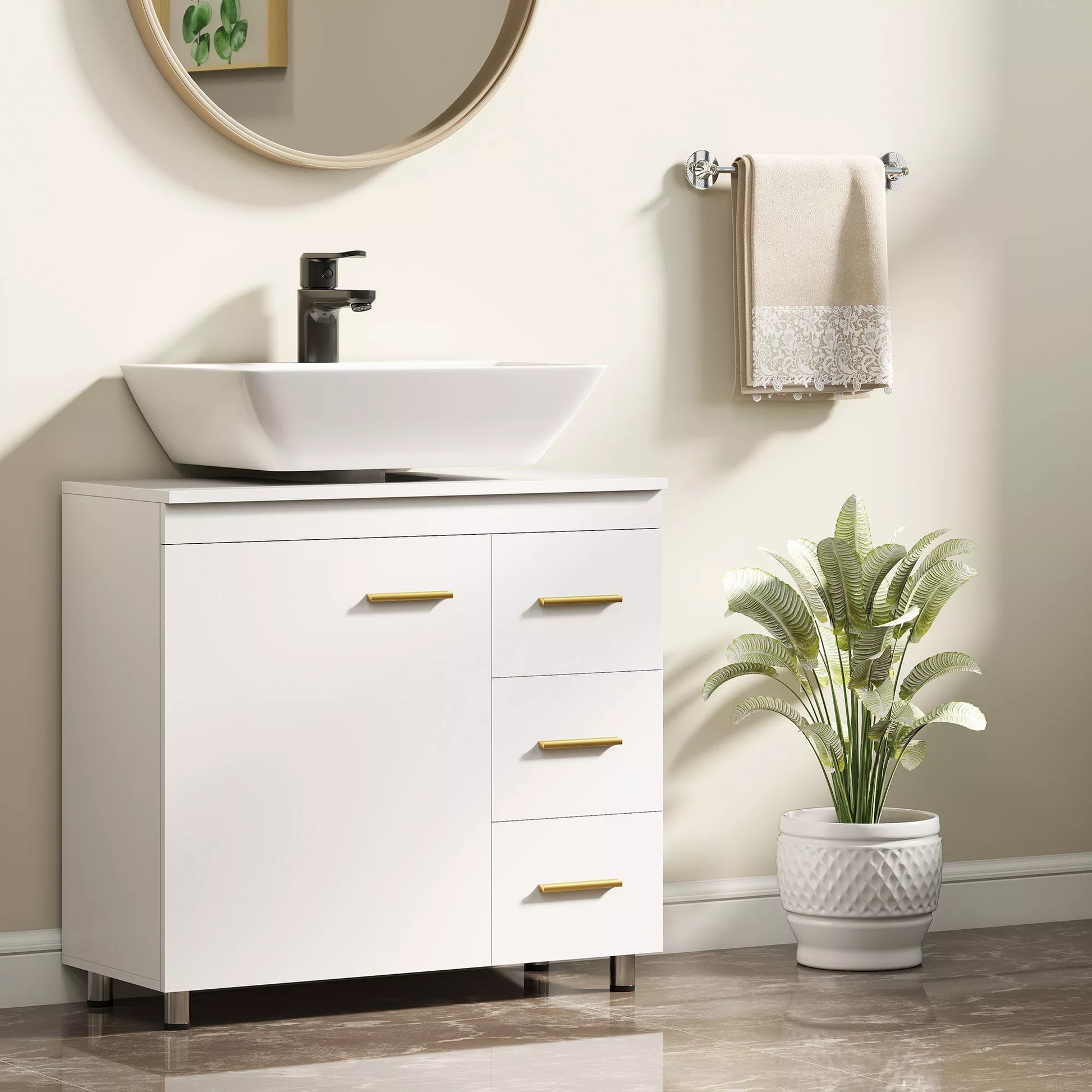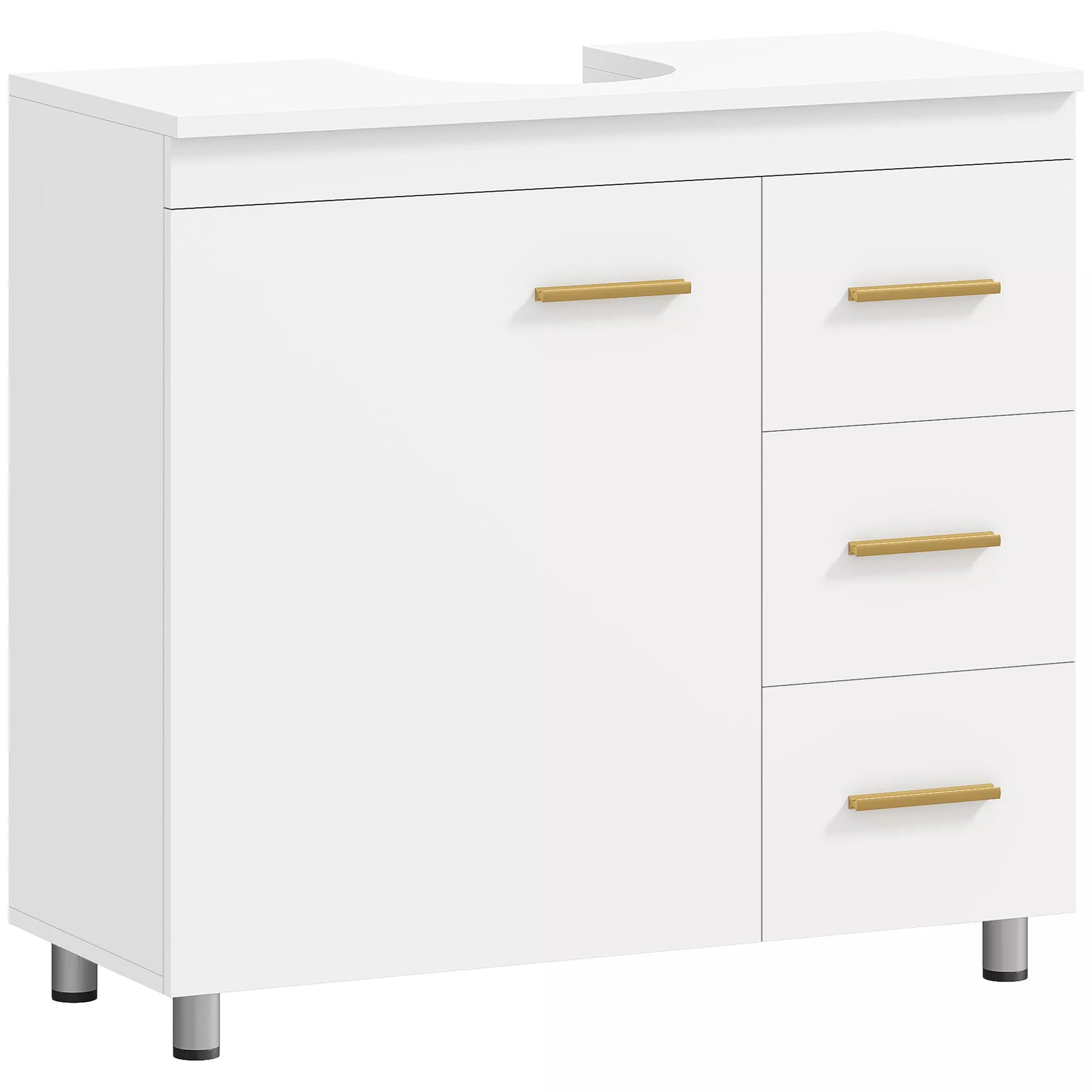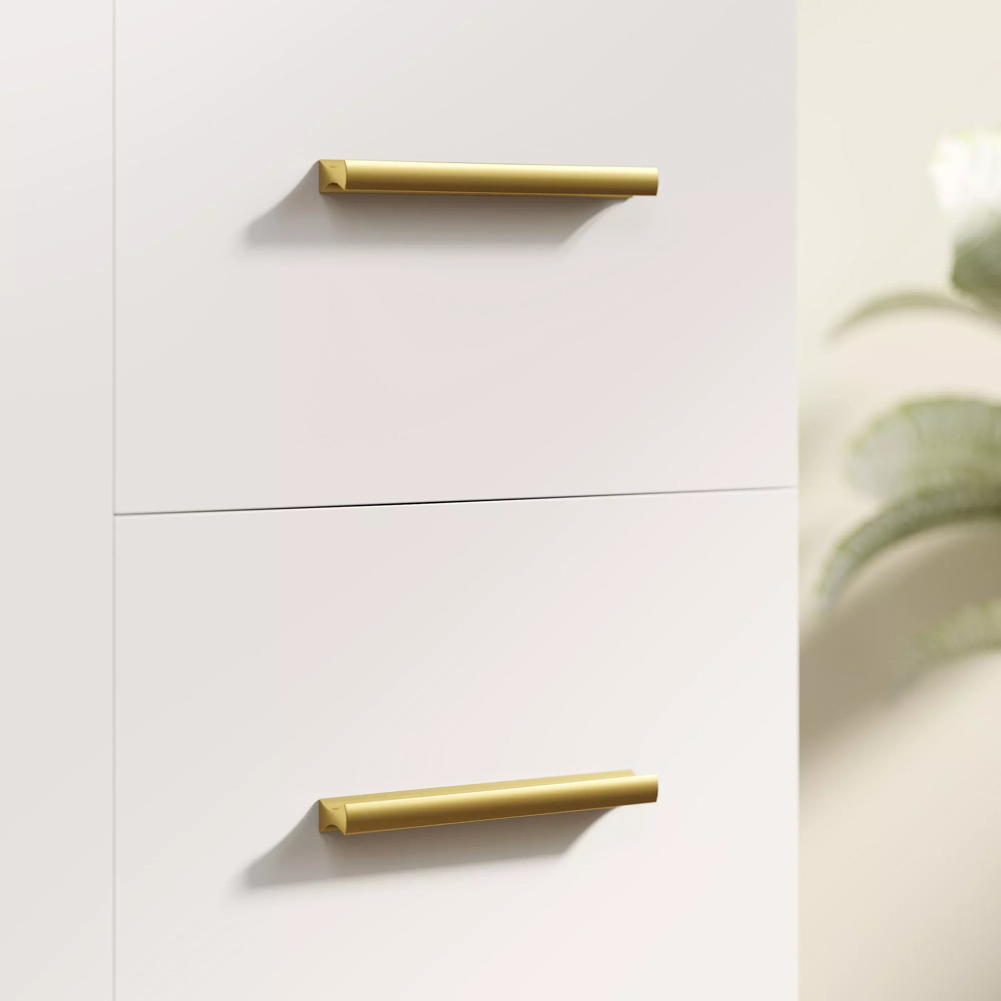 - ✔ Skaidri balta išvaizda, papuošta prašmatniomis aukso spalvos rankenėlėmis, suteikia modernios elegancijos