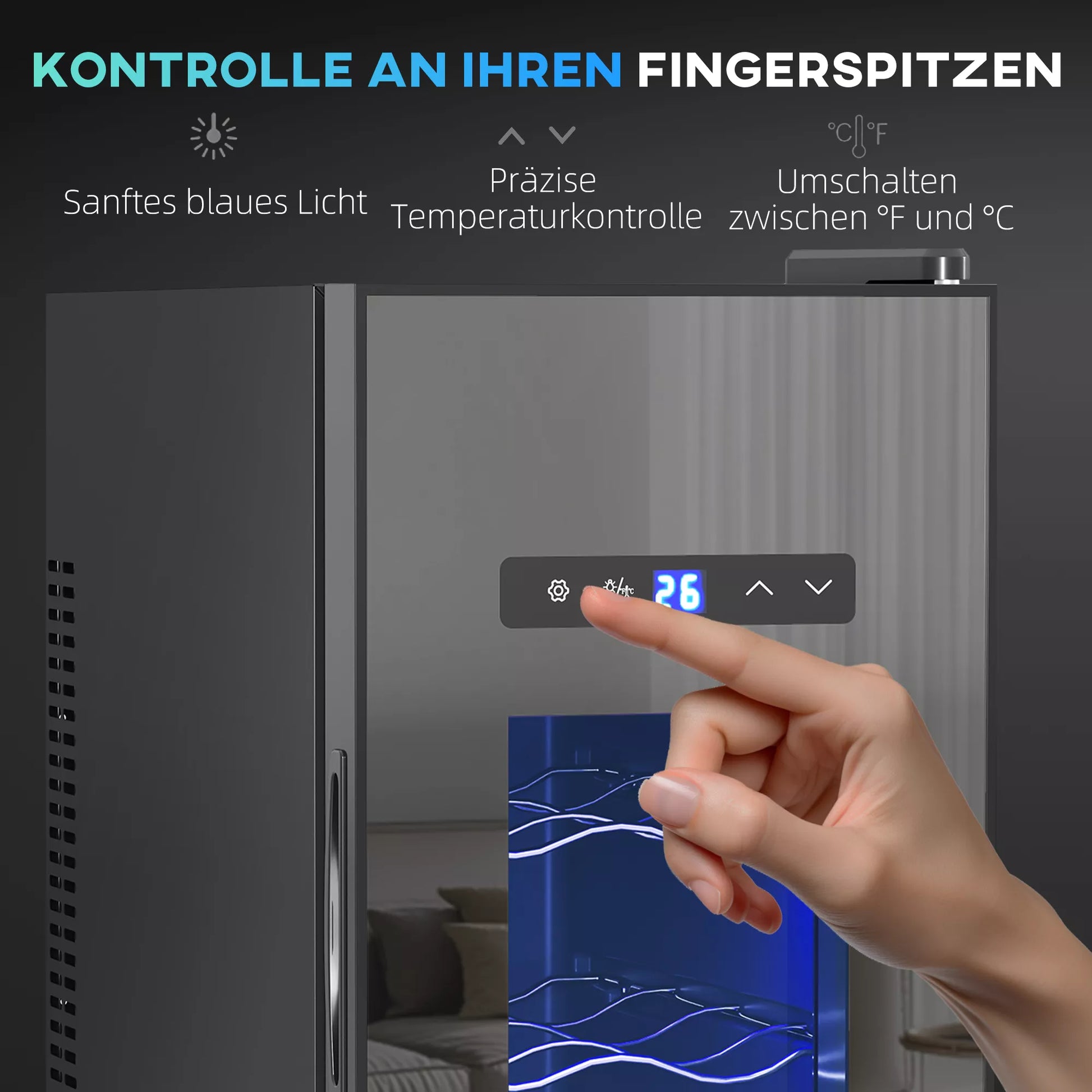 Vyno šaldytuvas 12 buteliams, su stiklinėmis durelėmis, Gėrimų šaldytuvas su LED apšvietimu, lietimui jautriu ekranu, Juodas