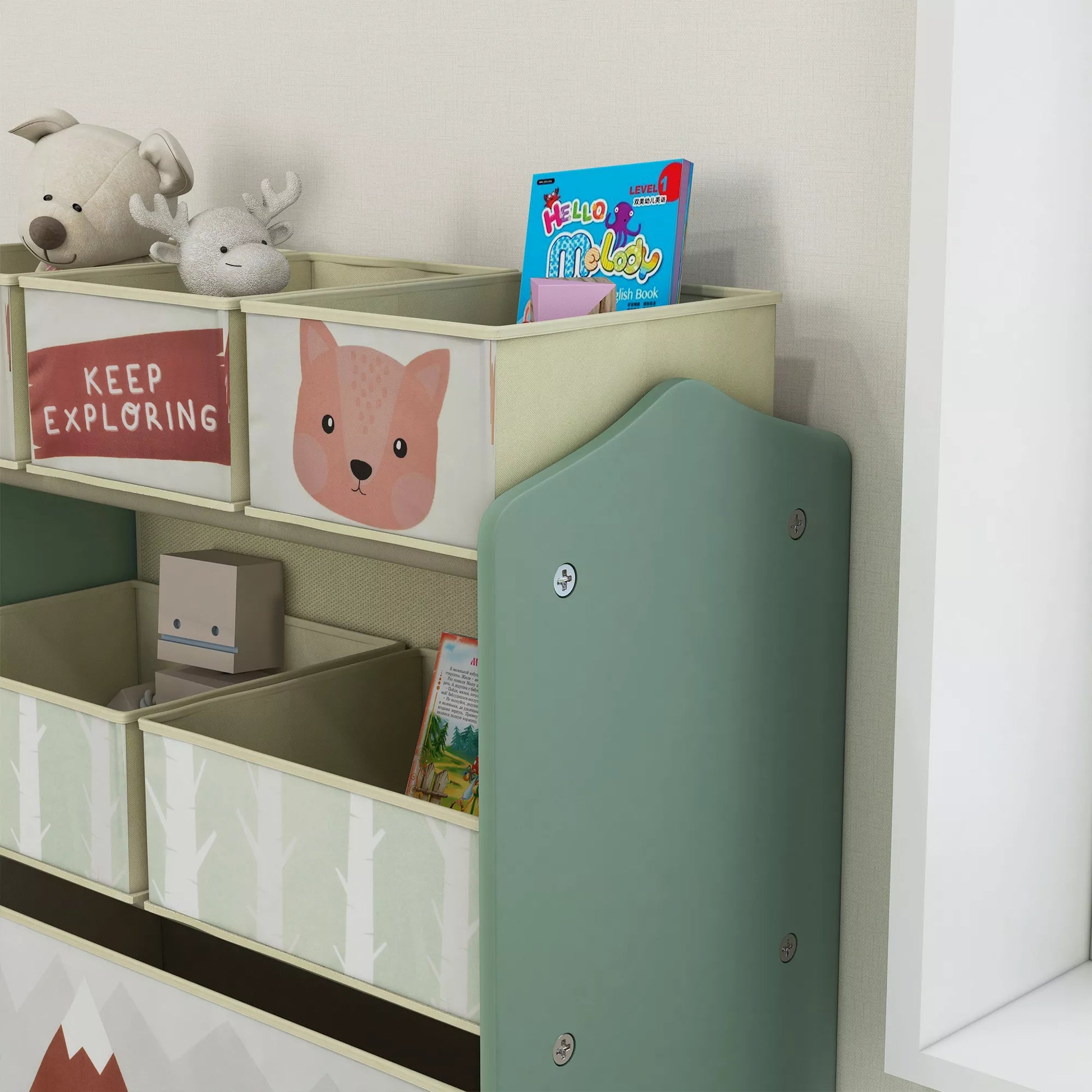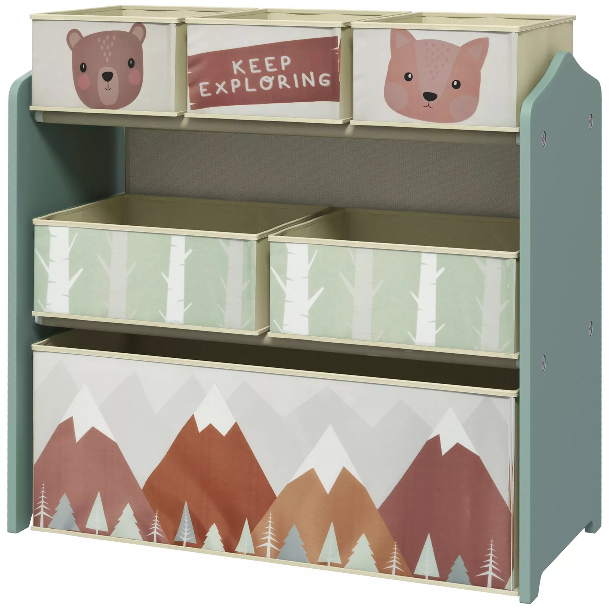 Vaikiška spintelė su 6 audinių dėžėmis, mielas raštas, 63x30x66 cm, Žalia